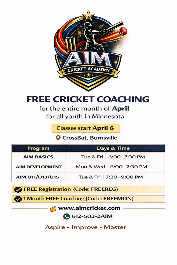 We're offering FREE cricket coaching for the entire month of April for all youth in Minnesota ???