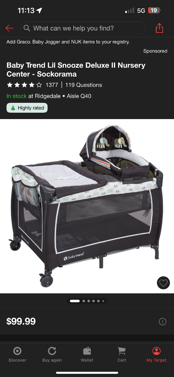 Features: Changing Table, Locking Wheels, Infant Napper, Carrying Bag, Bassinet, Baby Mobile